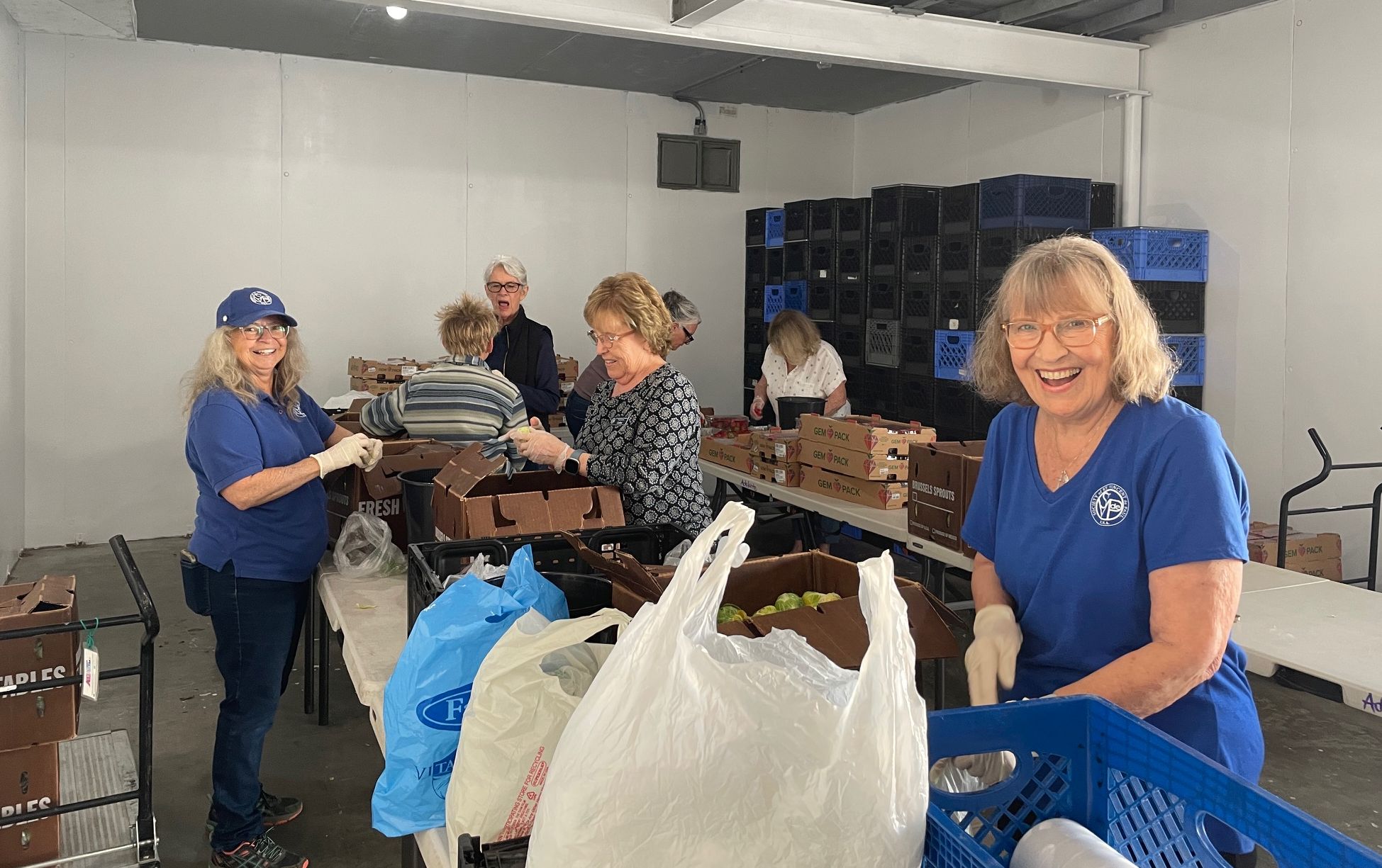 Our Vincentian volunteers at Work preparing fruit and vegetables for our Saturday drive through distribution.